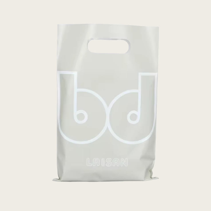 Custom Printed Logo Personalized HDPE LDPE Merchandise Die Cut Plastic Shopping Bag With Handle